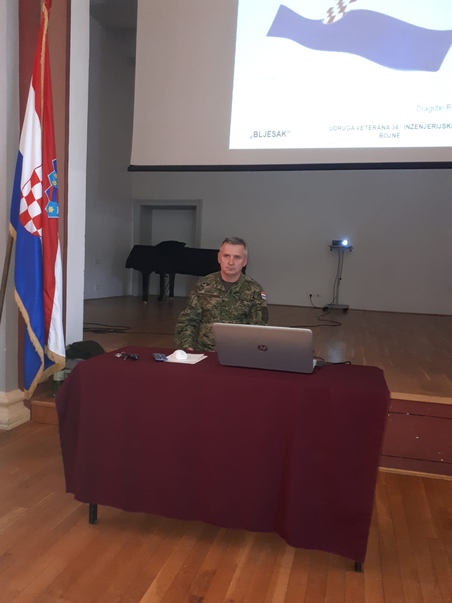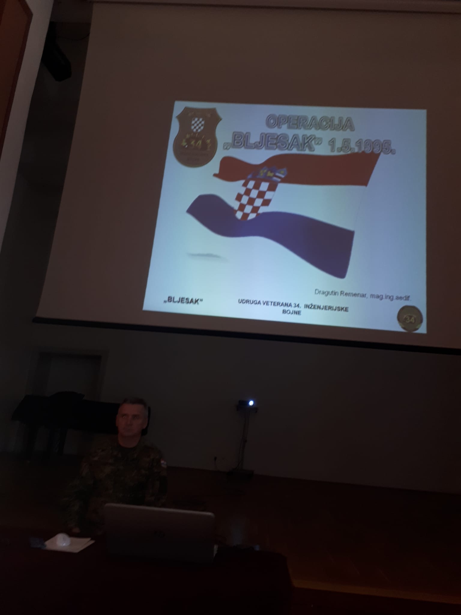 Tribinu je vodio njihov ratni zapovjednik i današnji predsjednik Veterana 34. inženjerijske bojne, brigadir Dragutin Remenar. U vrlo iscrpnom i zornom izlaganju Remenar je učenicima i sudionicima tribine približio vrijeme Domovinskog rata i doprinos bojne u njemu.